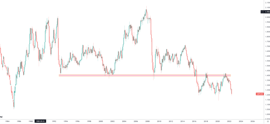2008年的金融危机使得英镑兑美元永远告别了2.0000的汇率水平,最低来到了1.3500;而这一个水平又在2016年脱欧公投之后被一次性突破。如今英镑兑美元徘徊在1.2000左右,可谓是每十年汇率都大不相同,逐阶而下。