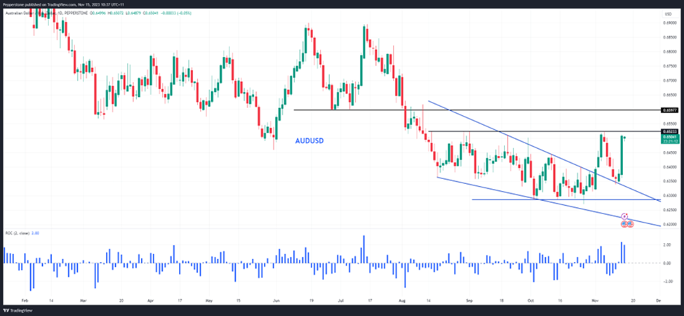 由于市场对美联储在2024年进一步降息的预期升温,我们看到高贝塔外汇表现良好,SEK、NZD元和AUD当日净收益超过2%。新兴市场外汇的百分比变化更大,这也与相对较低的流动性有关。在未来的交易时段中,我们将关注澳元薪资价格指数和中国股市的走势。由于市场普遍预期工资年均增长3.9%,如果数据达到4%水平,AUDUSD可能上破0.6520——这个水平自8月中旬以来一直是阻力,可能成为交易者今天关注的重点。这一货币对的实际结构看起来很有趣,虽然主要是由美元的波动引起的,但如果中国股市走强,并且我们看到美国零售销售报告疲软,对0.6520的突破可能引发对0.6600的关注。