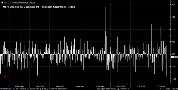 上个月主导金融市场的“买入一切”主题的一个后果是金融条件的显著宽松,这很可能是政策制定者在经济周期的这一阶段最不想看到的事情,因为几乎所有G10经济体的通胀仍然保持在2%的目标水平以上。例如,高盛的美国金融条件指数上个月录得自成立以来最大的一个月降幅,粗略估算,相当于超过三次25个基点的联邦基金利率降息。