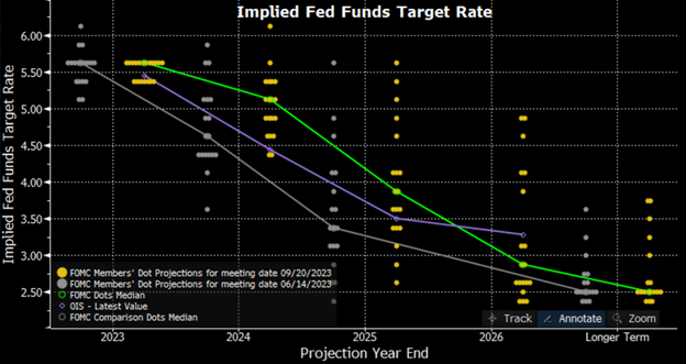 当然,上周最重要的事件来自鲍威尔和美联储,即联邦货币政策委员会的政策决策。正如市场普遍预期的那样,联邦基金利率的目标区间维持在5.25%至5.50%不变,并且随后发布的政策声明基本上与7月会议后发布的声明相一致。