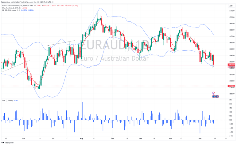 欧盟CPI(终值)(12月19日 21:00 AEDT) – 鉴于这是最终数据,并且市场并不认为之前报告的2.4%的广义CPI和3.6%的核心CPI年同比增长会有变化,因此这应该是一个低波动性事件。然而,它或将提醒交易者欧元区通胀压力的急剧下降,从而增强市场对欧洲央行可能在3月份降息的乐观预期。