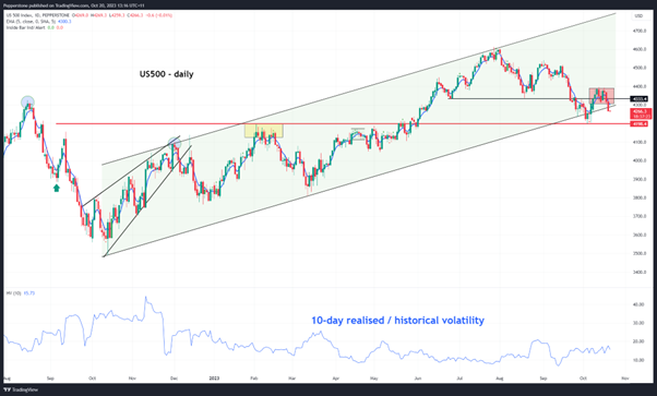 正如我们所看到的,标普 500 指数 10 天已实现波动率仍然较低,但任何上涨都可能产生重大影响。