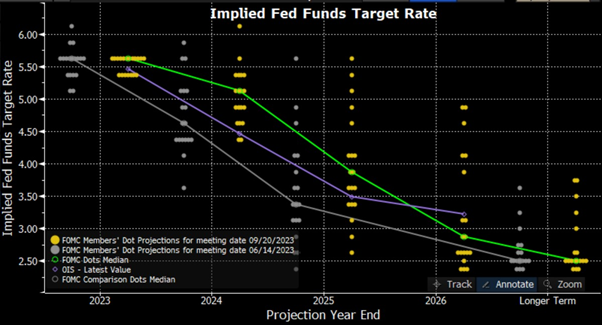 FOMC和预期一样保持利率不变,和上次会议相比主要的变化是明年利率中位数预测,从之前的4.625%提高到5.125%,也就意味着明年的降息幅度从100个基点下调到50个基点左右,政策立场还是相对保守。之后鲍威尔的讲话也没有什么新信息,主要还是说坚持2%的通胀目标不变,经济软着陆是货币政策委员会的首要目标。
