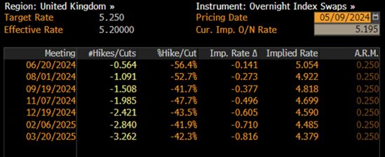 总而言之,下一步英央行只有维持利率不变和降息两个选项,甚至关键在于几月降息。OLS利率市场是一个观察市场情绪的好帮手。目前6月20日的英央行会议有50%的概率降息25个基点,到了8月1号的会议,那就成了有100%的概率降息25个基点。