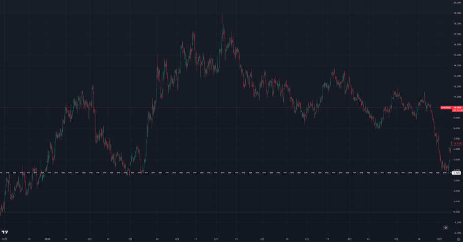 在上周的文章当中有提到黄金的分析逻辑正在发生转变,似乎支撑黄金的力量更为坚挺。本周,我们从技术面出发,在TradingView有趣的交互图表上探索黄金的价格走势。