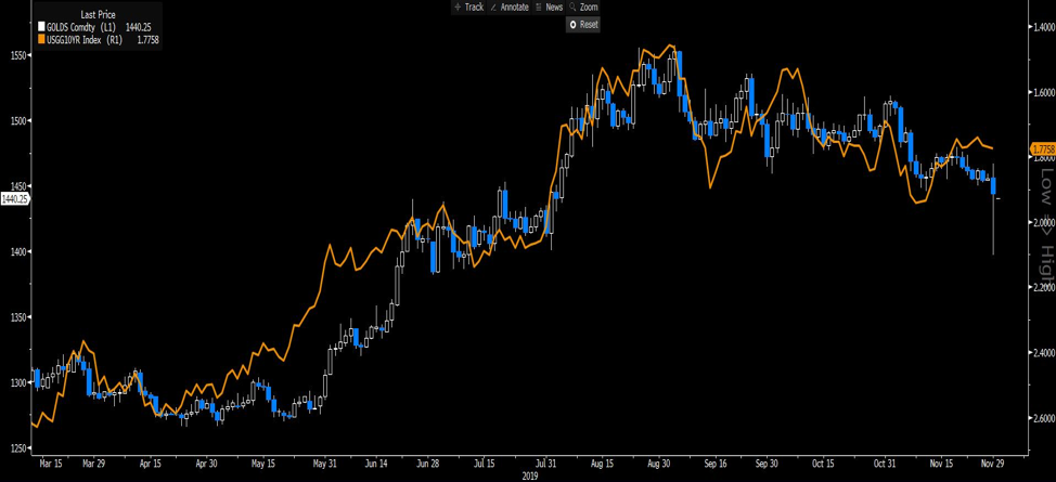 当全球债券收益率跌至令人难以置信的低水平或在许多情况下进一步跌至负值区域时,人们会购买黄金作为对冲收益递减世界的对冲工具。还有,当美联储加息接近尾声,且货币政策将边际转松下时,黄金有望继续上移
