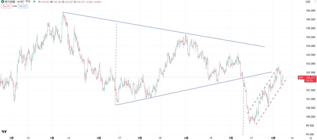 根据CME集团的美联储观察工具,市场仍定价美联储在年底前在加息25个基点的概率为30%。就算九月或者十二月在进行一次加息,但市场很可能已经在思考什么时候可能降息呢?一旦这样的市场预期逐步变浓,美元指数的反弹势头可能就此终止。