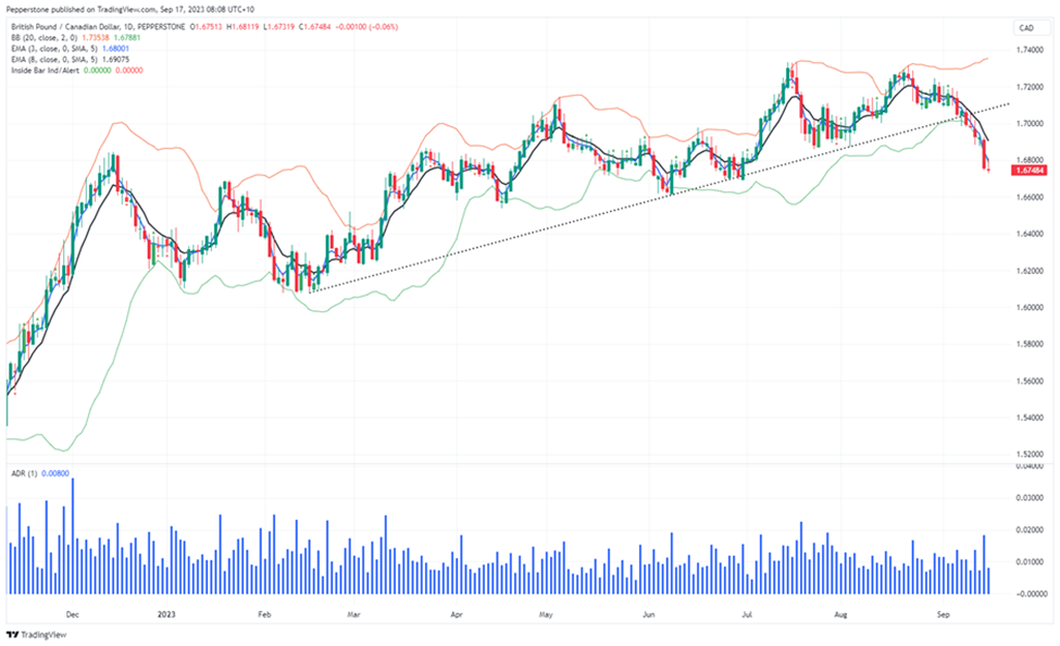 英国央行会议(周四 21:00 AEST) – 英国央行应该会加息25个基点,将基准利率提高至5.5%。几乎54位经济学家全部(由彭博社调查)都呼吁加息,而利率互换市场也以82%的概率定价了这一结果。这很可能标志着英国央行在这一周期内的最后一次加息。英国央行还将宣布从2023年10月到2024年9月提高量化紧缩的速度。