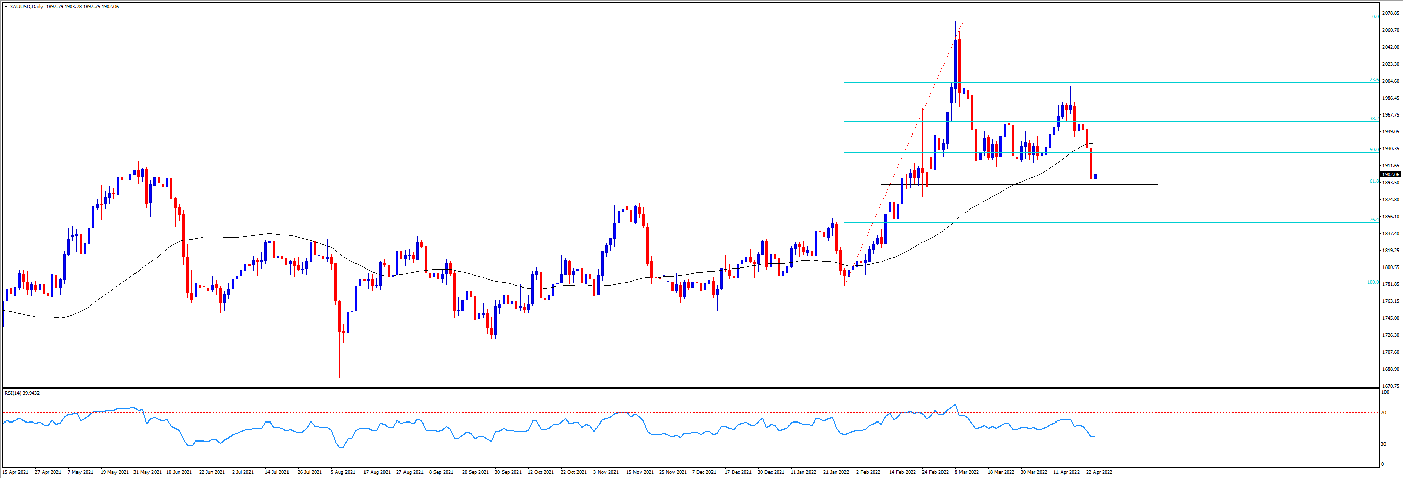 美国实际利率接近零值以及美元指数的走强迫使金价处于守势。黄金跌破1900整数关口后,1890附近的61.8%的回档位是下一个关键支撑。若跌穿,顶部的反转结构将逐渐成型。