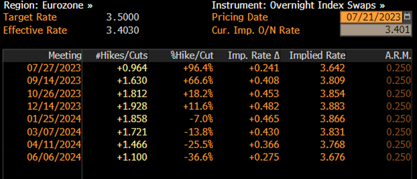 欧洲央行7月会议似乎不太可能带来任何重大影响,欧洲央行管理委员会将再次加息 25 个基点,并且政策制定者可能不愿意在暑假开始之前“大幅改变现状”。尽管市场继续寻求秋季起可能的利率路径的明确性,但拉加德不太可能做出任何政策的承诺。