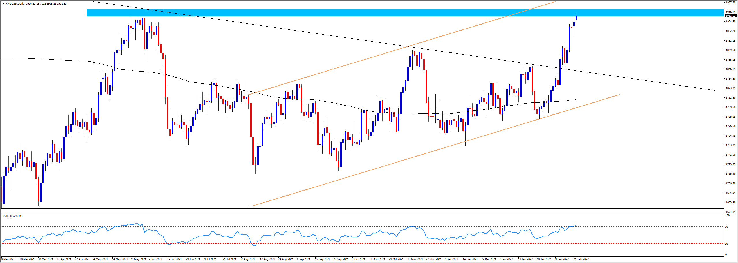 可以想象,一旦当如此激进的加息路径预期受到乌克兰局势的拖累而有所放缓,双重因素叠加下黄金可能会爆发出更强劲的上涨动能。前高1916甚至是2000美元都将成为可能!