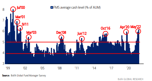 美国银行的一份对基金经理的调查显示,目前基金持有的现金比例达到了自911以来的最高水平,显示出对于目前市场环境缺乏信心和把握。当然,如果极端的比率能够反转,自然会对股市形成利好支撑,只是我们暂时还需要耐心等待。