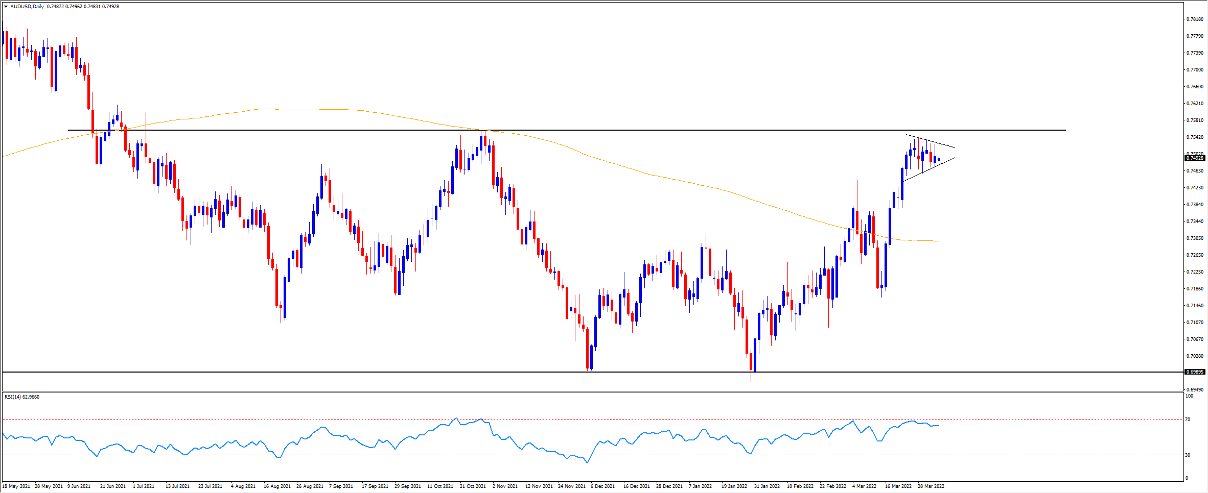 澳元在过去9周内有7周录得上涨,但随着大宗商品价格涨势的放缓,以及风险情绪的反复,澳元上周在0.7456-0.7540区间展开整理。若突破上行可以看至0.7680附近。