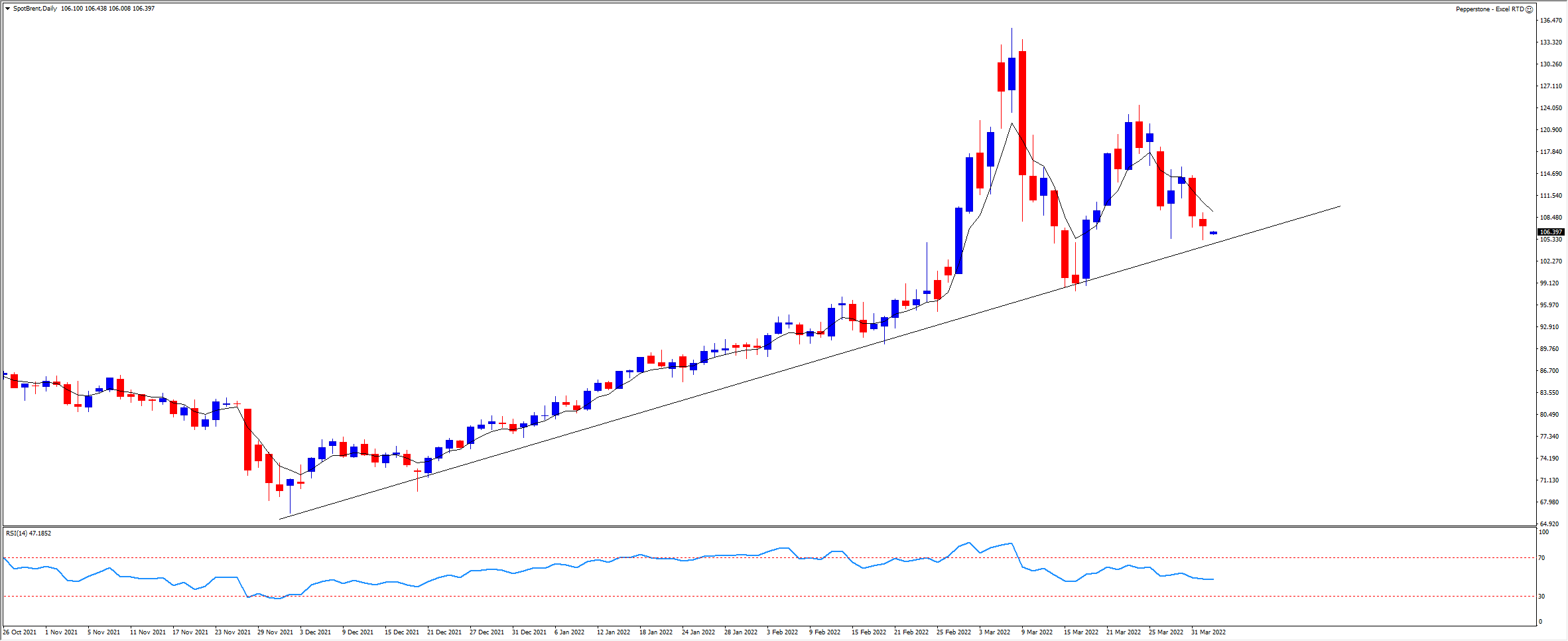 欧元周线反弹至1.1045。但俄乌局势仍不明朗,对俄罗斯的各项制裁正在对欧洲形成反噬,导致欧元区通胀刷新历史新高7.5%。若欧元无法尽快有效突破1.1120一线的关键阻力,预计将继续震荡下行。关注本周四的欧洲央行会议纪要,若释放更多加息预期,或能帮助欧元短线企稳。